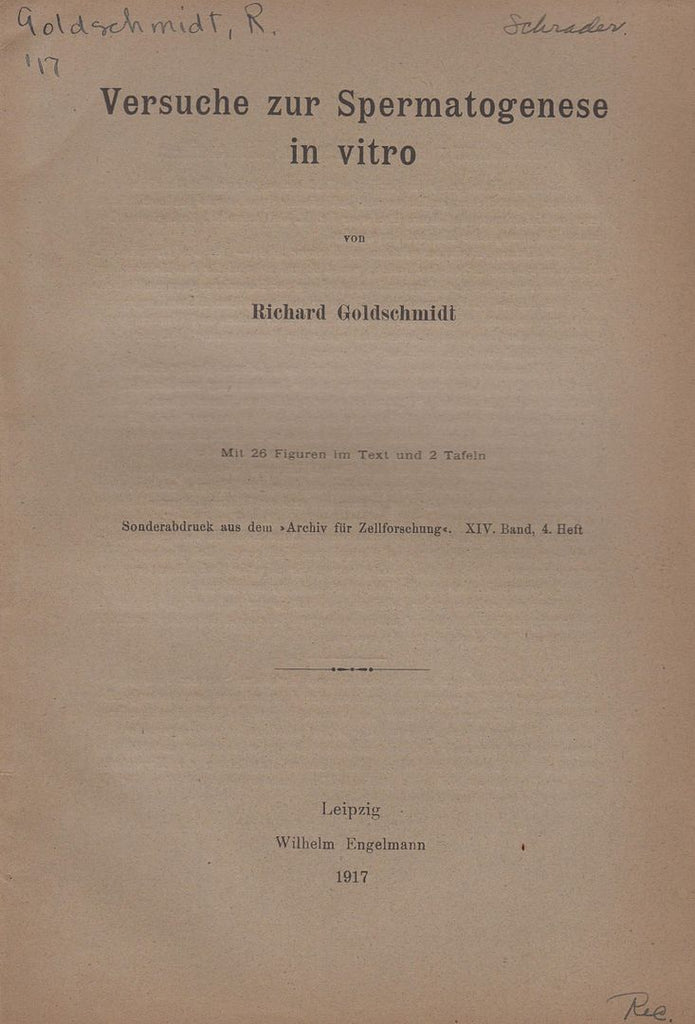 Description Very good condition. First edition. Offprint. Original wrappers. Archiv fur Zellforschung, Vol. XIV, No. 4, pp. 421-450. Science. Biology.*