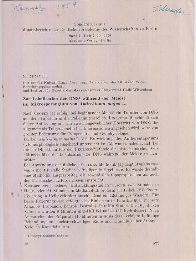 Zur Lokalisation der DNS wahrend der Meiose im Mikrosporangium von Antirrhinum majus L. |