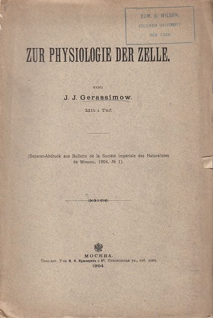 First edition. Offprint. Part of spine perished, else good condition. Name stamp of Edmund B. Wilson on front cover.* Some pages uncut. Botany. Science. Antiquarian. |