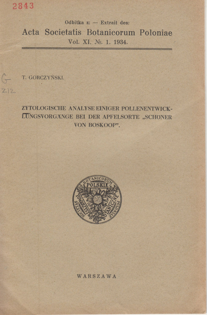 Zytologische Analyse Einiger Pollenentwicklungsvorgange bei der Apfelsorte "Schoner von Boskoop" |